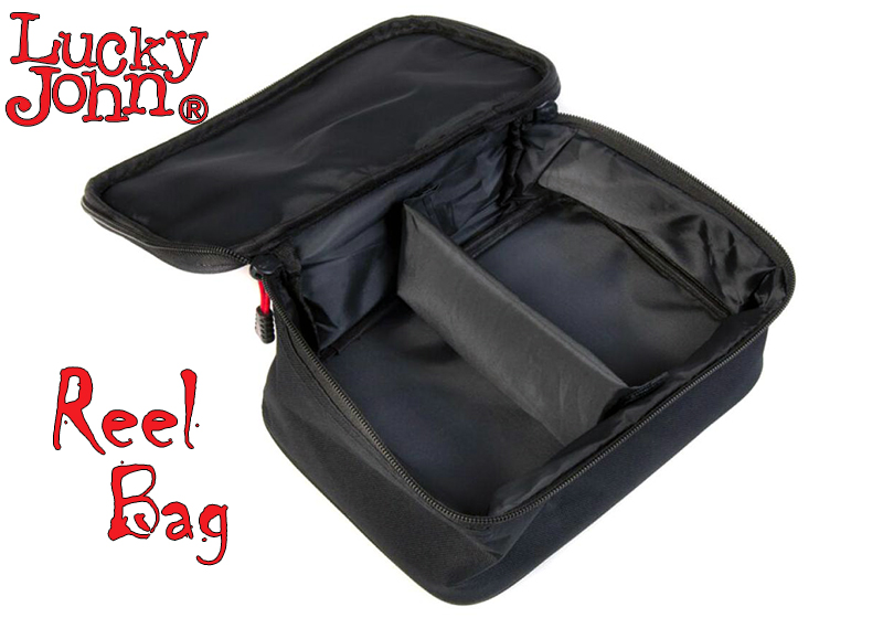 Η Reel Bag είναι μια εύχρηστη και ευρύχωρη τσάντα μεταφοράς μηχανισμών από την Lucky John απαραίτητη για πολλών ειδών ψαρέματα όταν χρειάζεται να αποσπάσουμε τους μηχανισμούς μας από το καλάμι μας για μεγαλύτερη ασφάλεια μέχρι να φτάσουμε στο τόπο ψαρέματος. Κατασκευάσμενη από ανθεκτικό PVC σε συνδυασμό με αφρώδες υλικό εσωτερικά μας προσφέρει την μέγιστη ασφάλεια των μηχανισμών μας από χτυπήματα. Το φερμουάρ της είναι ανθεκτικό στην διάβρωση χάρις στην ηλεκτροστατική μαύρη βαφή που έχει. Εσωτερικά διαθέτει δύο ανεξάρτητες θήκες που χωρίζουν από μάλακο υλικό και χωράνε συνολικα 4 μηχανισμούς μεσαίου μεγέθους (3000-4000) ή 2 μηχανισμών μεγαλύτερου μεγέθους.